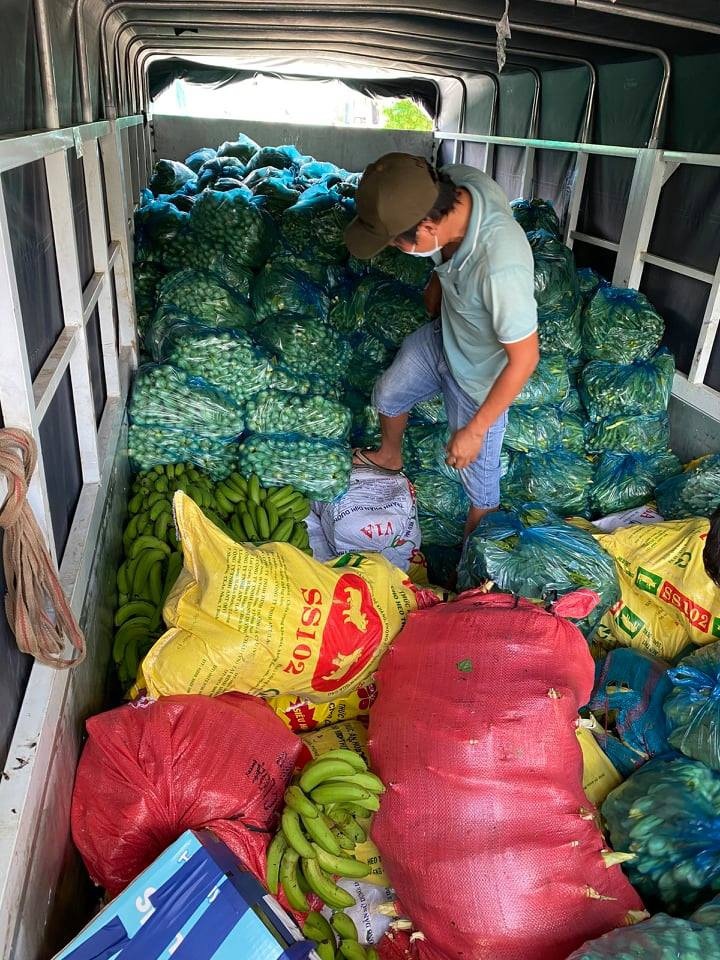 Rau xanh được đưa vào một vùng phong toả tại TP.HCM. (Ảnh: Thanh niên)