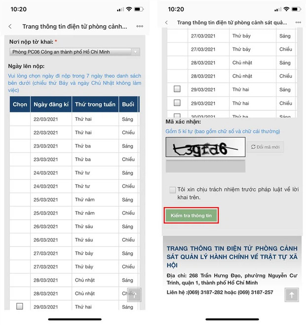 Bước 4: Chọn Ngày lên nộp của bạn, ngày đi nộp sẽ trong 7 ngày theo danh sách (Chiều thứ Bảy và ngày Chủ Nhật không làm việc).