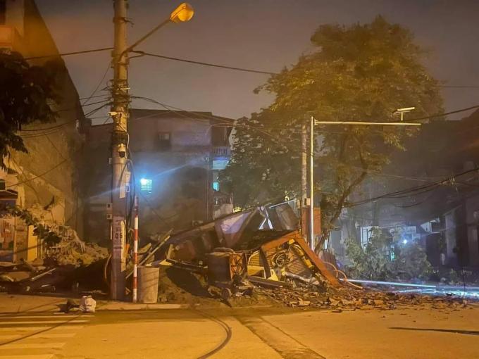 Ngôi nhà đổ sập trong đêm. (Ảnh: Dân Việt)