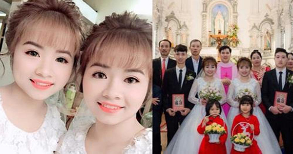 Chị em sinh đôi này học cùng trường, làm chung chỗ và cưới chồng cùng ngày thu hút sự quan tâm của dân mạng.