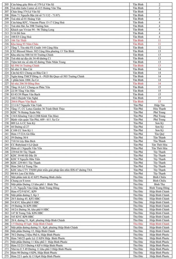 Danh sách những nơi phong tỏa ở TP.HCM và TP. Thủ Đức. Ảnh: Tuổi Trẻ