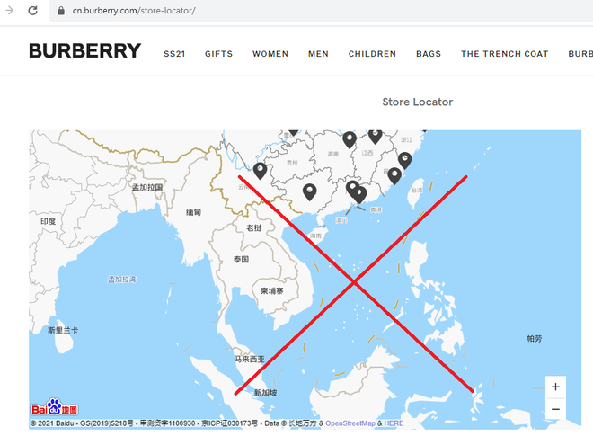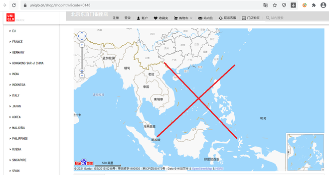 Theo đó nhiều hãng thời trang đình đám thế giới như: Chanel, Louis Vuitton, Gucci, UNIQLO, YSL… công khai hiển thị bản đồ có ”đường lưỡi bò” phi pháp ngay trên website của mình. Cụ thể, khi vào website phiên bản tiếng Trung của các hãng này, người dùng dễ dàng bắt gặp phần bản đồ hiển thị định vị cửa hàng ở đầu trang.