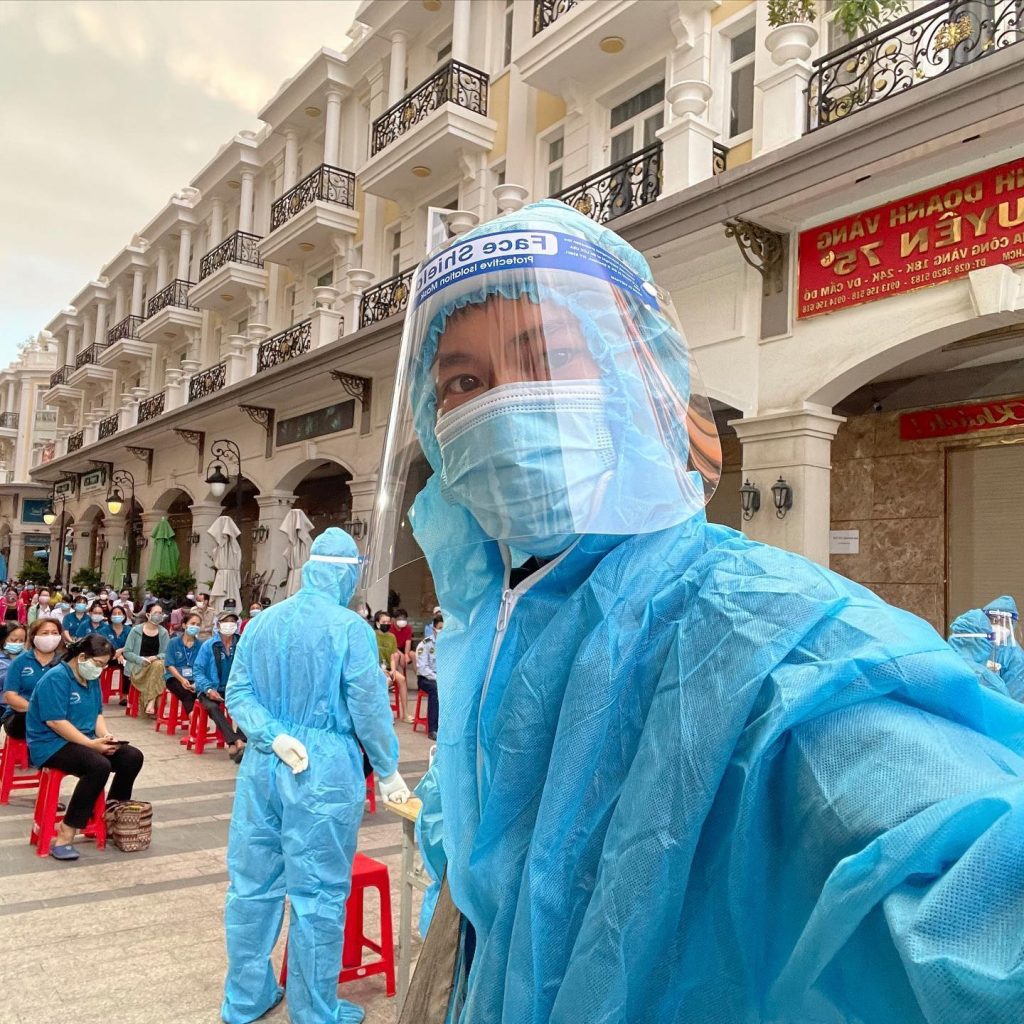 Hùng tham gia đội hình tình nguyện viên hỗ trợ chống dịch từ đầu mùa dịch đến nay