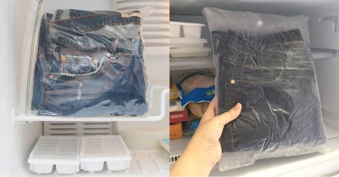 Để tránh điều này, nhiều người đã bỏ quần jeans mới mua vào một túi zip hoặc túi nilon, bọc lại rồi cho vào ngăn đá tủ lạnh suốt vài tiếng đồng hồ.