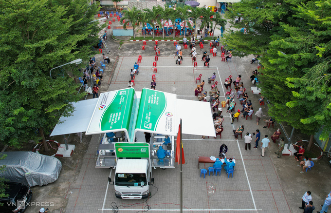 Tiêm vaccine cho người dân phường 9, quận Gò Vấp bằng xe lưu động ngày 14/8. Ảnh: Quỳnh Trần
