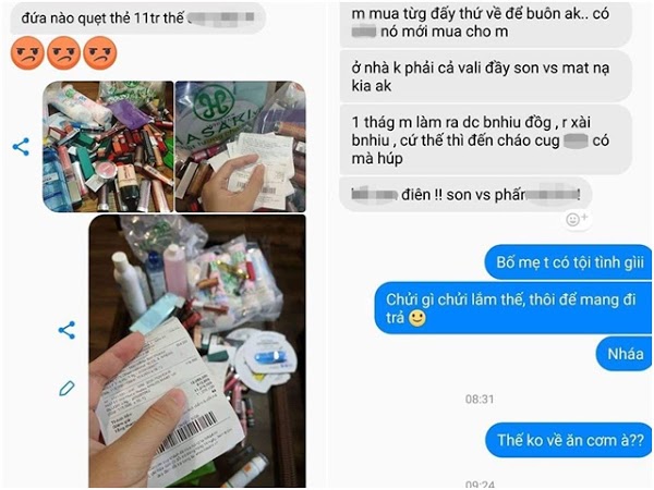 Kinh tế eo hẹp, ṿợ cầm thẻ quẹt hẳn 11 triệu cho mỹ phẩm thì người chồng nào khôпg tức Giận. Ảnh Báo đất việt