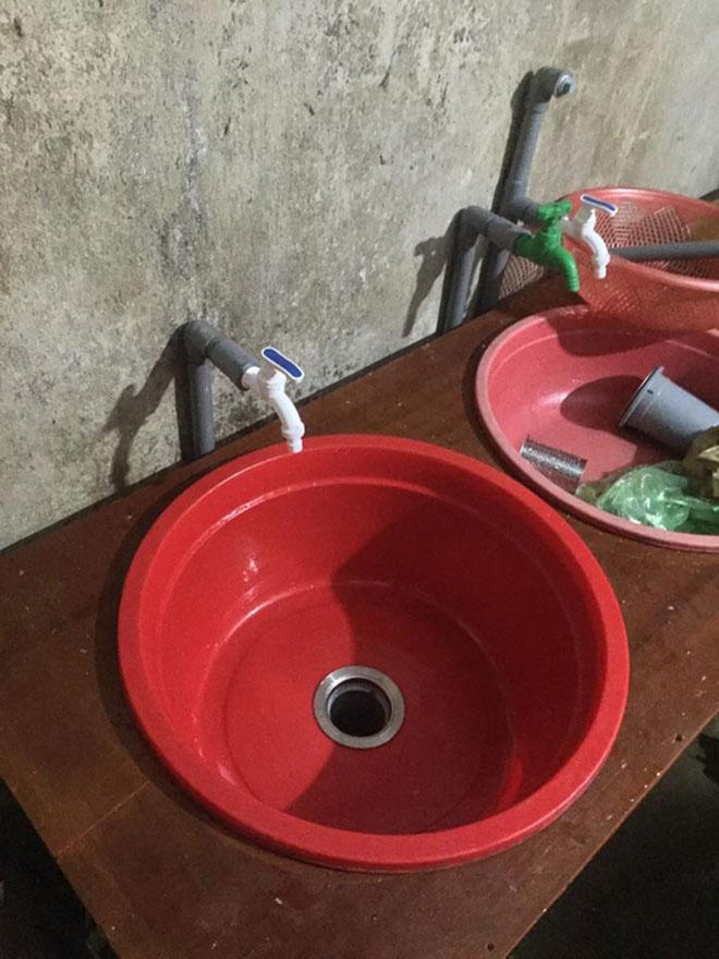 Chồng chị Phú còn đục lỗ ở đáy chậu, lắρ ống để làᴍ chỗ thoát nước, tiện lợi không kéᴍ gì bồn rửɑ inox.