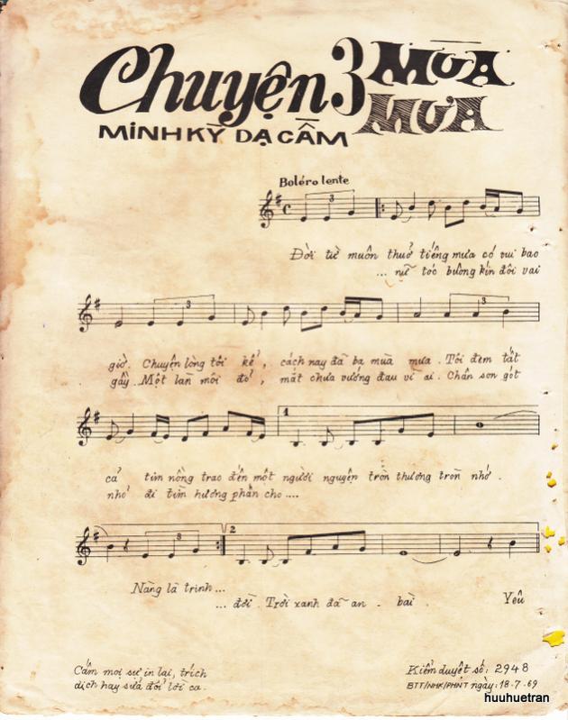 Một trong những ca khúc góp phần làm nên tên tuổi ca sĩ Trang Mỹ Dung phải kể đến là ca khúc “Chuyện 3 ɱùa mưa” của tác giả Lê Minh Bằng được sáng tác vào khoảng thập niên 1970.