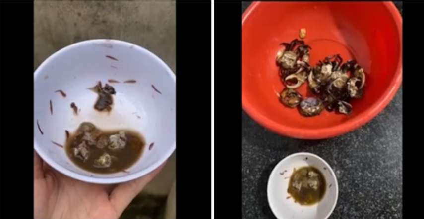 Hóa ra cô gái này trong khi làm sạch cua đã phát hiện ra con gì đó đang bò lổm ngổm Từ mình cua ra bát. Chúng có màu đỏ, rất giống với sán hoặc đỉa. Bài viết có đính kèm với 1 đoạn video cực kỳ “sống động”.