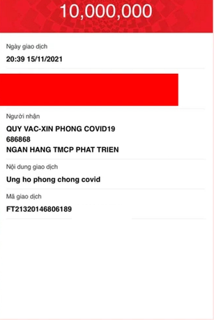 Cô gái chuyển khoản 10 triệu đồng tiền bồi thường để ủng hộ quỹ vắc xin.