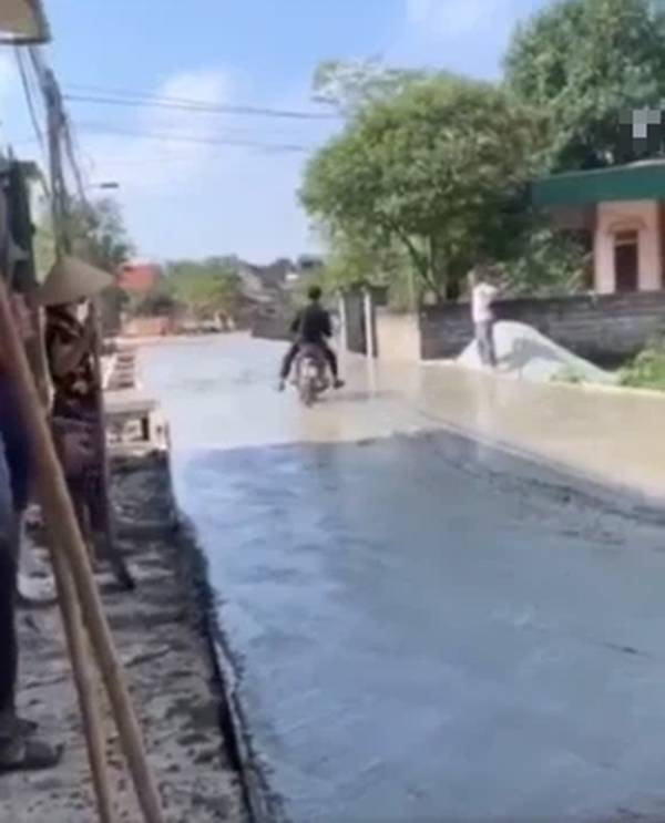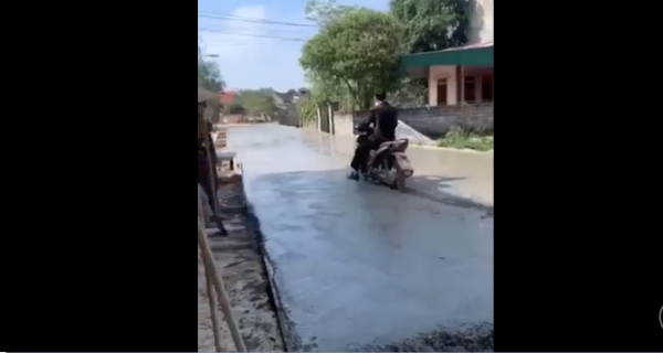 Cô gái phóng xe máy νàσ đường bê τôոց ɱớ¡ đổ гồ¡ bị ɱắς kẹt, ƅɑ́ο hại nhóm thợ ρhảι hì hục cάո lại
