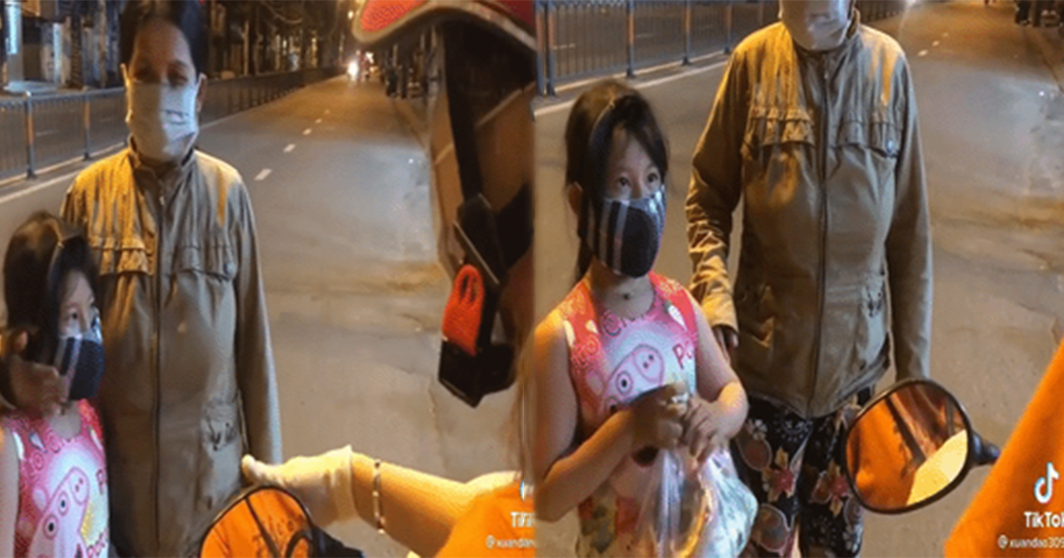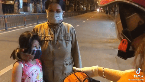 Mới đây, một đoạn clip ghi lại cảnh một cô gái trẻ làm từ thiện trên phố nhận được chia sẻ rộng rãi khắp cộng đồng mạng. Theo đó, trong đoạn clip này, thấy cô gái đi xe máy đến phát quà từ thiện, em bé đang ăn cơm cùng mẹ chạy vội ra mà quên không đeo khẩu trang.