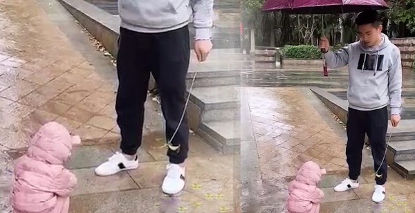 Mới đầu con bé 2 tuổi chạy ra nghịch mưa thì bố thích lắm, bảo con gái đáng yêu, cứ cho chơi, xong thấy một lúc rồi sợ con bệnh, gọi vào thì nhất quyết không vào.