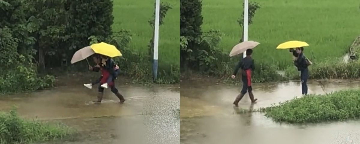 Khoảnh khắc cha cõng con dưới mưa khiến nhiều người xúc động