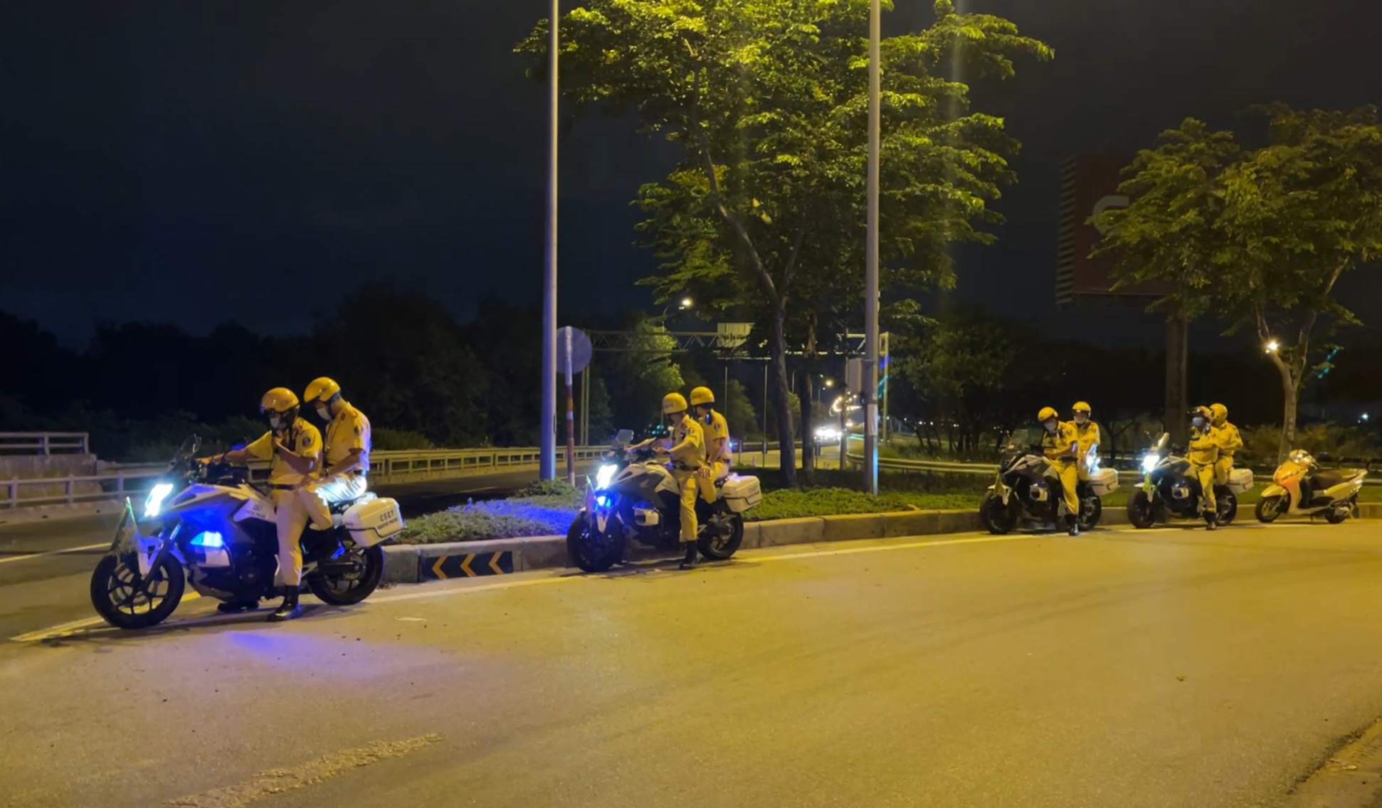 Từ 23 giờ 30 phút, CSGT TP.HCM có mặt chờ đón đoàn tại đường dẫn cao tốc