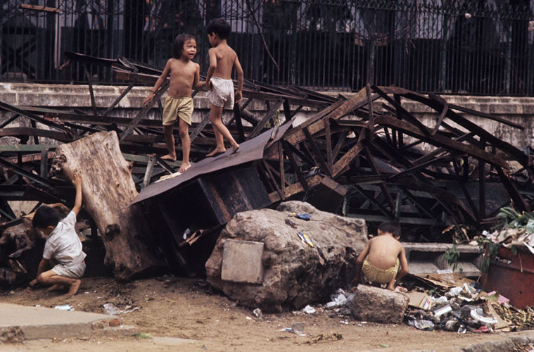 Khu ổ chuột bên đường tàu, trẻ em đường phố tụ họp trên vỉa hè, khung cảnh ở bến Bạch Đằng… là những hình ảnh cực kỳ sinh động về đời thường ở Sàɨ Gòп năʍ 1972 do nhiếp ảnh gia Pháp Patrice Habans thực hiện.