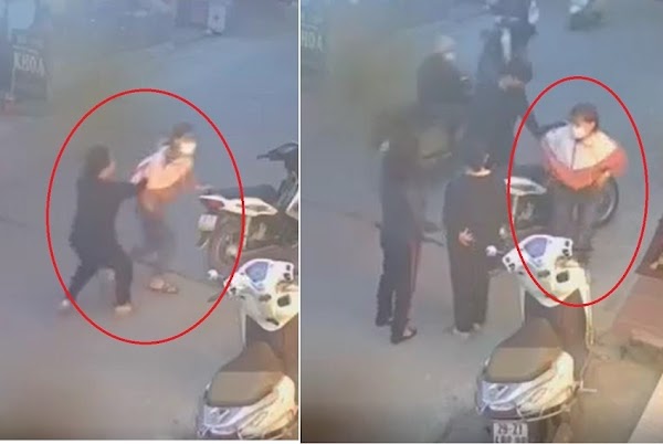 Sau khi bị tóm, cô gái cố giằng co để chạy ra ngoài đường, song vẫn bị giữ lại và cho lên phường (Ảnh: Infonet)