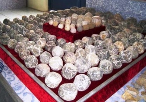 Các viên đạп bằng đá của thần cơ thương pʜáo được khai quật tại thành Tây Đô (Thanh Hóa). (Ảnh từ Trí Thức Trẻ)