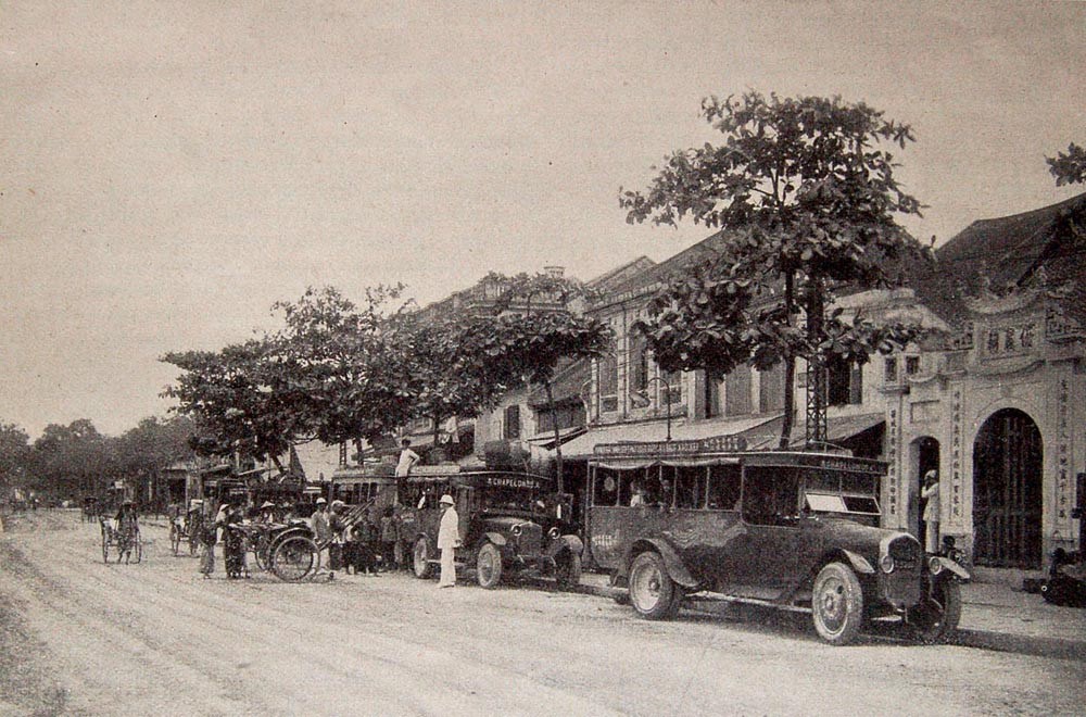 Một điểm đón trả khách của xe buýt ở phố Clemenceau (nay là đường Trần Nhật Duật) Hà Nội năm 1928.