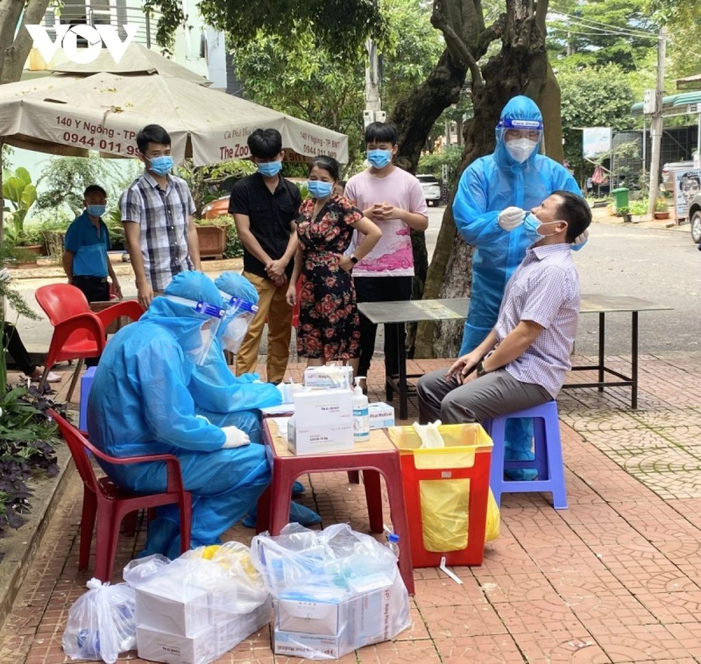 Ngành Y tế Đắk Lắk thực hiện test nhanh, bóc tác F0 ra cộng đồng nhằm khống chế dịch bệnh. (Ảnh: VOV)