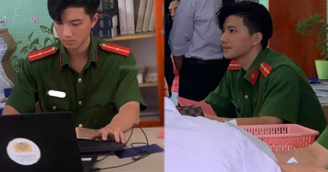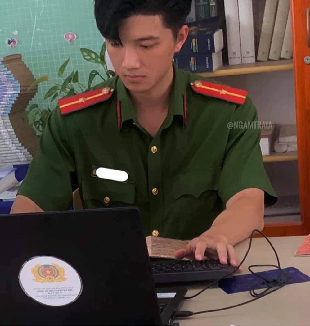 Góc chính diện của nam công an điển trai. (Ảnh: Ngamtraia)