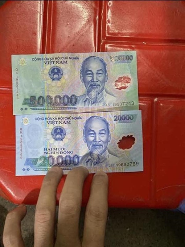 Người đăng tải bài viết cho biết: “Ông đi bán nhưng bị 1 cặp đôi gọi nhau là vợ chồng đưa tờ tiền 20k, nhưng chúng đã sửa thành tờ 500k như hình bên trên để lừa cụ. Họ mua 3 cái chong chóng 30k đồng nghĩa cụ phải trả lại 470k, cũng chỉ vì mắt kém với trời tối nên lúc biết chuyện chả còn tâm trạng nữa.”