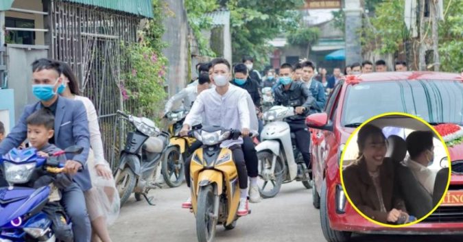 Chỉ mới làm lễ thành hôn xong, cô dâu đã có dấu hiệu chuyển dạ. Bạn bè và người nhà thấy vậy liền dùng xe hoa chở cô dâu đến thẳng bệnh viện.