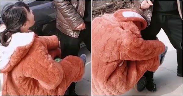 Để năn nỉ bố chồng, nàng dâu “chơi lớn” bằng cách ngồi xuống, ôm lấy chân bố chồng và nài nỉ ông cho mình đủ số tiền để mua xe. Đáng chú ý, cô con dâu ngồi trên chiếc xe đồ chơi bé tí, hai tay níu lấy đùi bố chồng để làm nũng xin tiền. Nhiều người vừa bất ngờ, vừa bật cười trước hành động như trẻ con của nàng dâu.