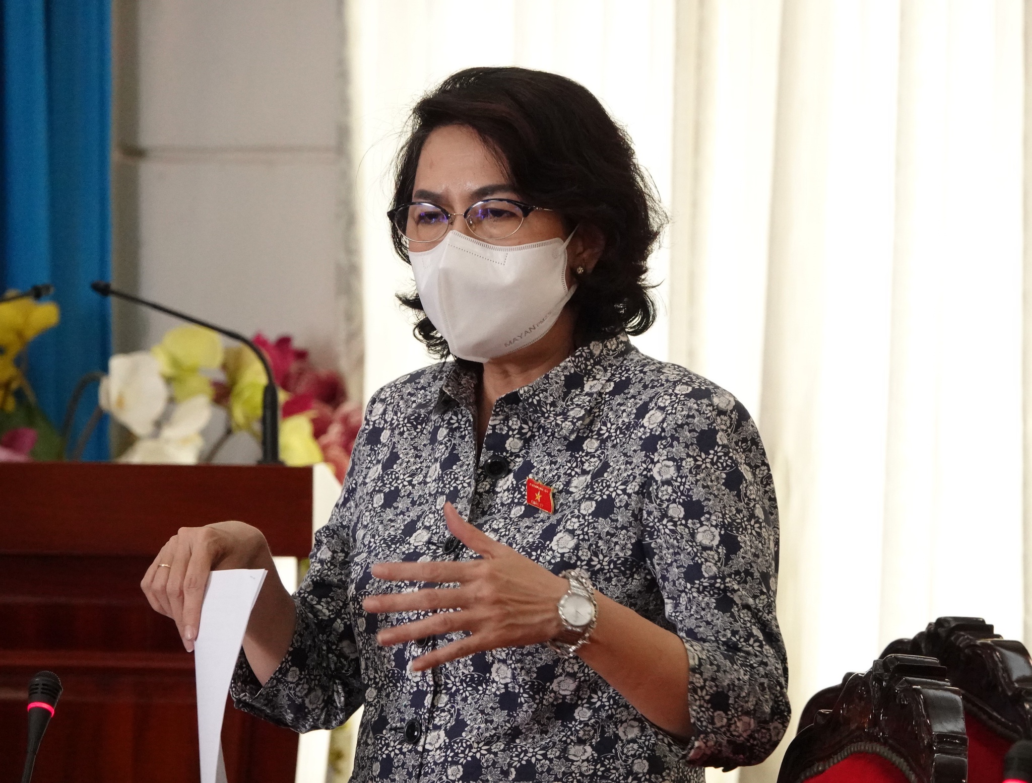 Bà Tô Thị Bích Châu, Chủ tịch Ủy ban MTTQVN TP.HCM nêu thực tế về bất cập của cơ chế, quy định khiến thành phố bỏ lỡ cơ hội tiếp nhận nhiều máy móc, thiết bị y tế