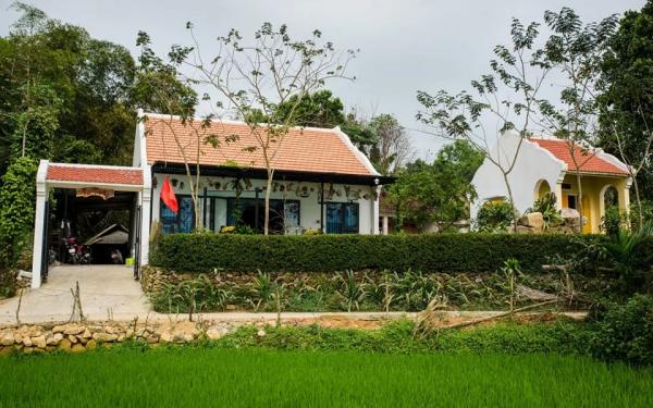 Ngôi nhà cấp 4 mái đỏ, trước mặt là cánh đồng lúa xanh tươi đã mang lại cảm giác yên bình khó tả đã khiến nhiều người trầm trồ…