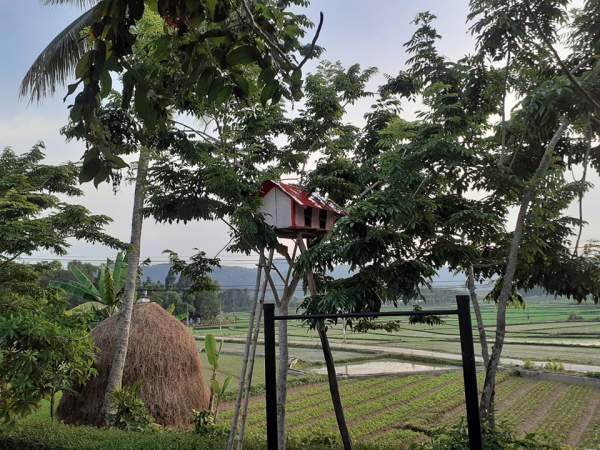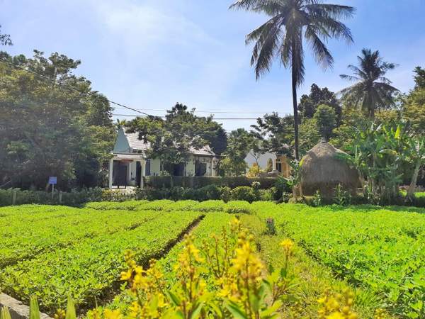 Xung quanh có sự thoáng đãng của cánh đồng, quanh nhà trồng rất nhiều cây có bóng mát, hàng rào cũng là từ rặng chè tàu nên tạo không gian rất đỗi mát mẻ, dễ chịu giữa ngày hè nóng bức.