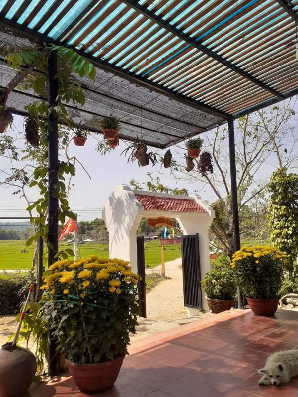Xung quanh có sự thoáng đãng của cánh đồng, quanh nhà trồng rất nhiều cây có bóng mát, hàng rào cũng là từ rặng chè tàu nên tạo không gian rất đỗi mát mẻ, dễ chịu giữa ngày hè nóng bức.