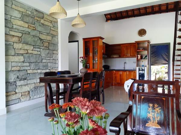Ngôi nhà có view trước mặt là cánh đồng lúa rất nổi bật vì nhà có thiên nhiên xanh mát bao quanh, điều này cũng tạo không khí rất đỗi thân thương với nhiều người vẫn thương nhớ mái nhà xưa nơi mình đã từng lớn lên.Ngôi nhà cấp 4 này được xây tại thôn Long Sơn, Tam Đại, Phú Ninh, Quảng Nam. Được xây trên nền đất 1500m2, nền nhà được tôn cao hơn so với mặt đường 1,5m nên nhà khá thoáng đãng và có tầm nhìn.