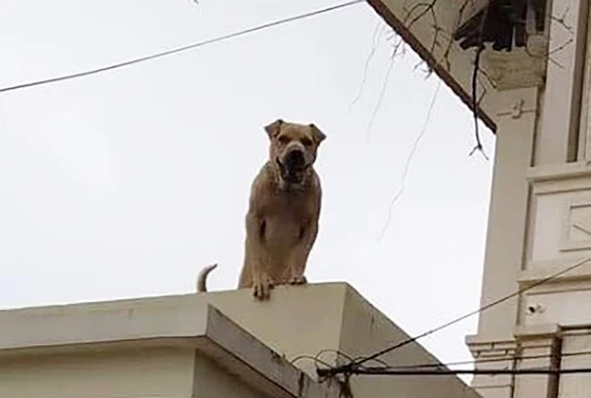Đáng nói hơn, chú chó không chỉ mừng rỡ một cách thông thường mà thể hiện sự phấn khích đặc biệt. Chó ta leo hẳn lên nóc nhà để được nhìn thấy cô gái rõ hơn khiến không chỉ người trong cuộc bất ngờ, buồn cười mà cả cộng đồng mạng cũng vui theo vì độ hồn nhiên, đáng yêu của chú chó.