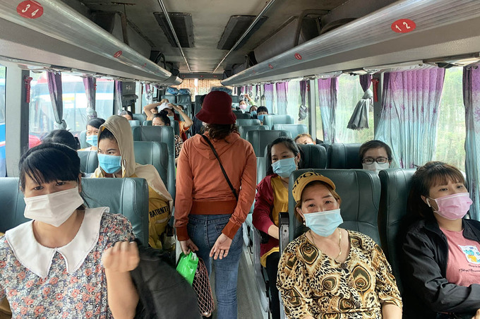 Công nhân nhà máy Pousung đi làm bằng xe đưa đón. Ảnh: An Phương.
