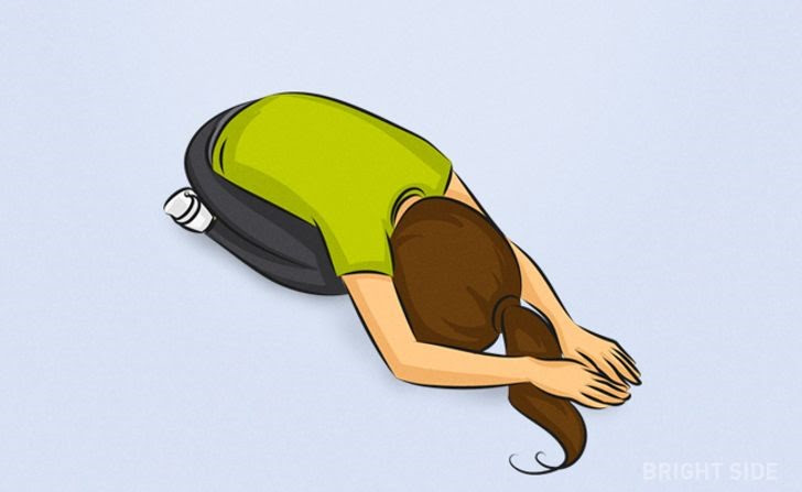 Trong tư thế nằm úp, mông ngồi trên 2 chân.