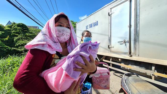 Chiều ngày 10/7, tại gần chốt kiểm soát dịch Covid-19 trên quốc lộ 50, huyện Bình Chánh, Thành phố Hồ Chí Minh xuất hiện người phụ nữ đang ôm một đứa trẻ sơ sinh trong tay, gương mặt tỏ rõ sự bồn chồn, lo lắng.
