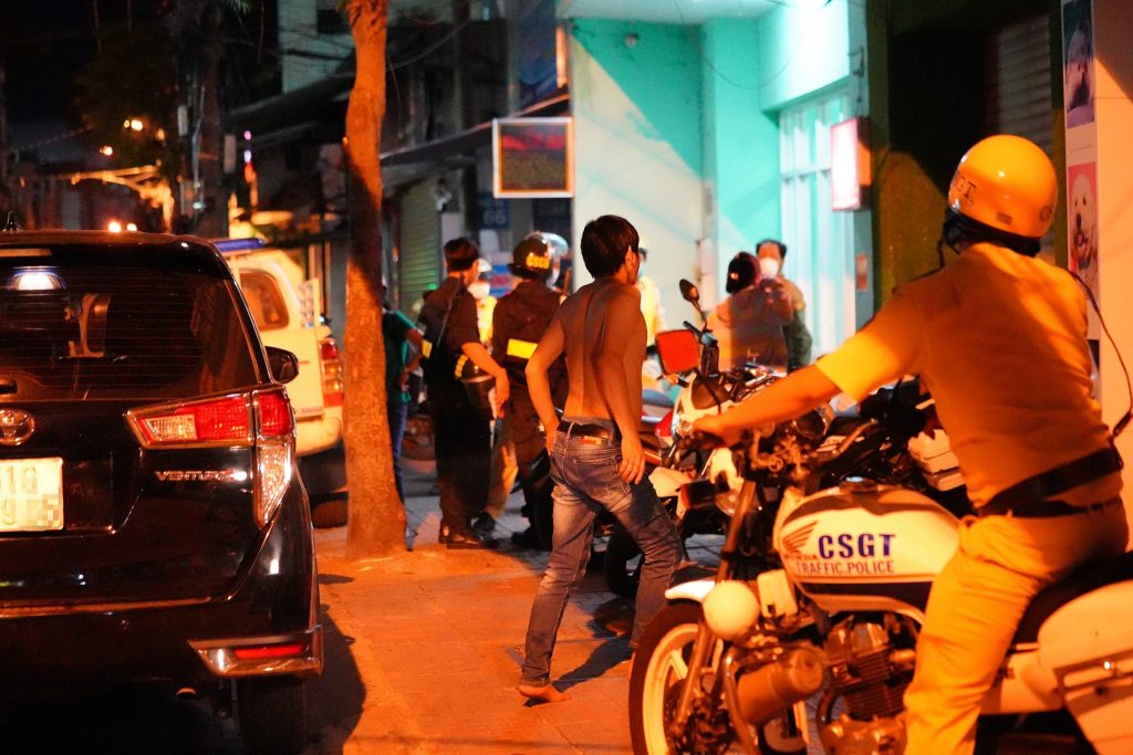 Khi công an phường hỏi nhà anh ở đâu, người này lè nhè nói: “Không có nhà, 16 năm ở Sài Gòn không có nhà. Mấy anh phạt nhẹ nhẹ chút nha, năm trăm, 1 triệu được rồi”. Ngồi trên ghế, đầu người này liên tục gật gật vì sa.y xỉ.n, anh cũng liên tục được công an yêu cầu kéo khẩu trang lên và ngồi yên tại chỗ.