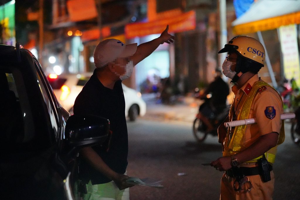 Khoảng 20 giờ 30 phút, tổ công tác yêu cầu một xe ô tô màu đen dừng lại. Ngay khi người điều khiển hạ kính xe, mùi bja rư.ợu đã tỏa ra xung quanh. Trên xe, một người đàn ông nằm cởi trần, sa.y xỉ.n.