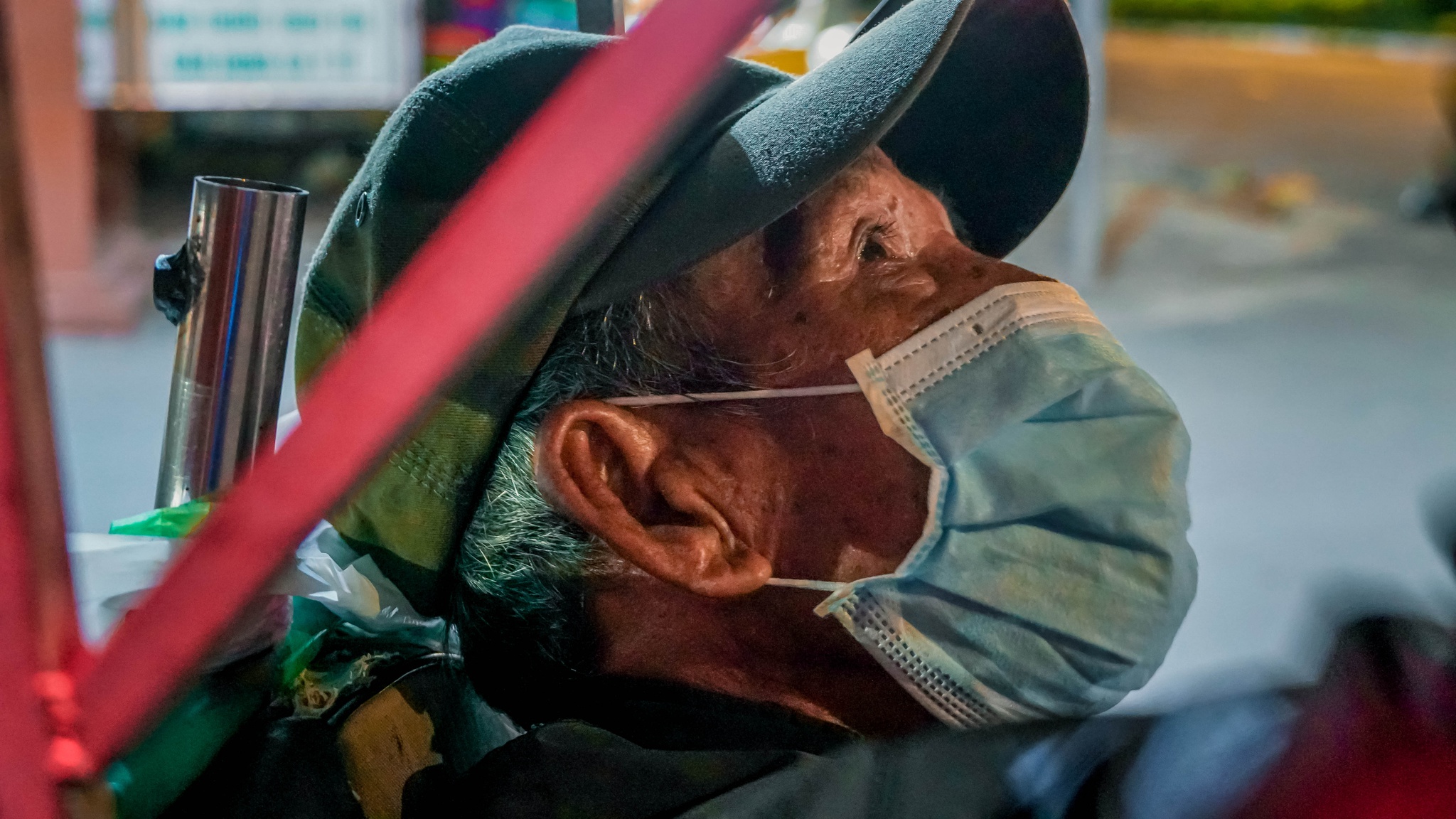 Không có tiền đóng trọ, cụ Võ Văn Quý (80 tuổi) ngủ trên xe lăn, che vài tấm bạc cũ chắn gió. Cơm ăn, nước uống được nhiều người cho, ông cố trụ lại Cần Thơ giữa mùa Covid-19, mong hết dịch để đi bán vé số lại.