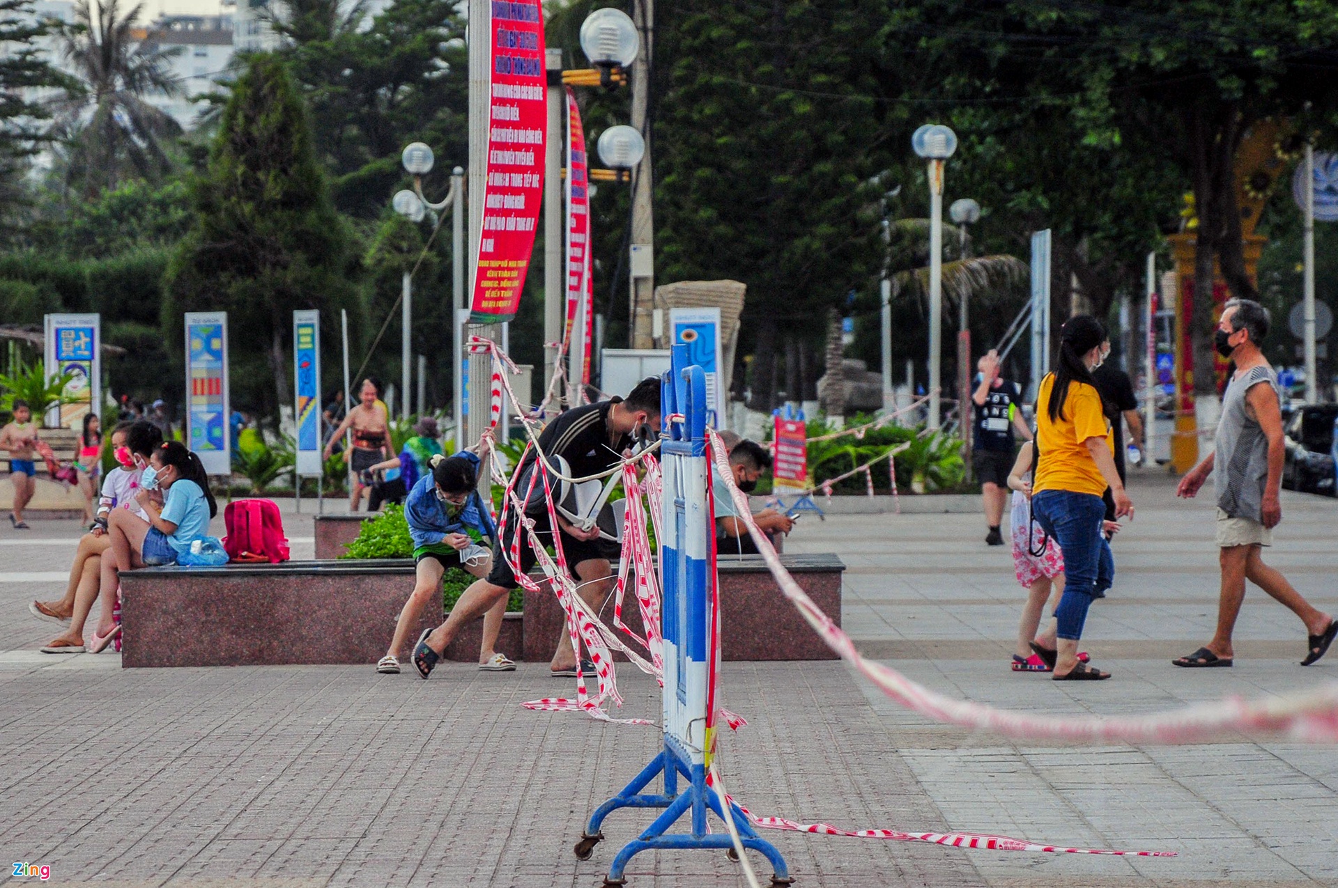Dọc bãi biển, chính quyền cắm bảng cảnh báo nhưng việc tập trung đông người ở đây vẫn tồn tại.