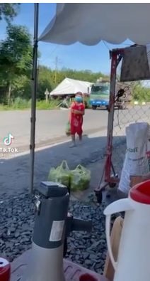 Ngày 21.8.2021, trên tài khoản Tiktok Vy Văn T. đăng tải đoạn clip về một cậu bé được mẹ nhờ mang xôi cúng rằm đến tặng các cán bộ ở chốt kiểm dịch.