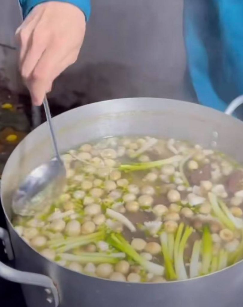 Hôm thì một nồi bánh canh nóng hổi được cô chú mang đến.