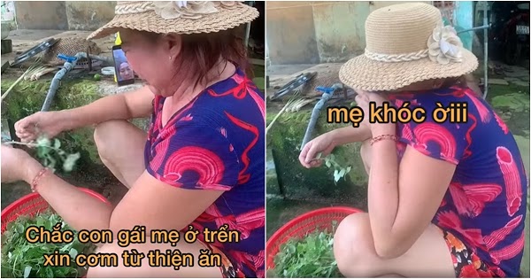 Có đoạn clip ngắn ghi lại cảnh người mẹ vừa ngồi lặt rau vừa khóc, nước mắt ngắn dài khi nghĩ tới đứa con xa quê đang mắc kẹt lại thành phố. Trong điện thoại đang facetime với con gái, người mẹ không kìm được xúc động, cô con gái còn lại thì đứng quay clip và trêu chọc mẹ.