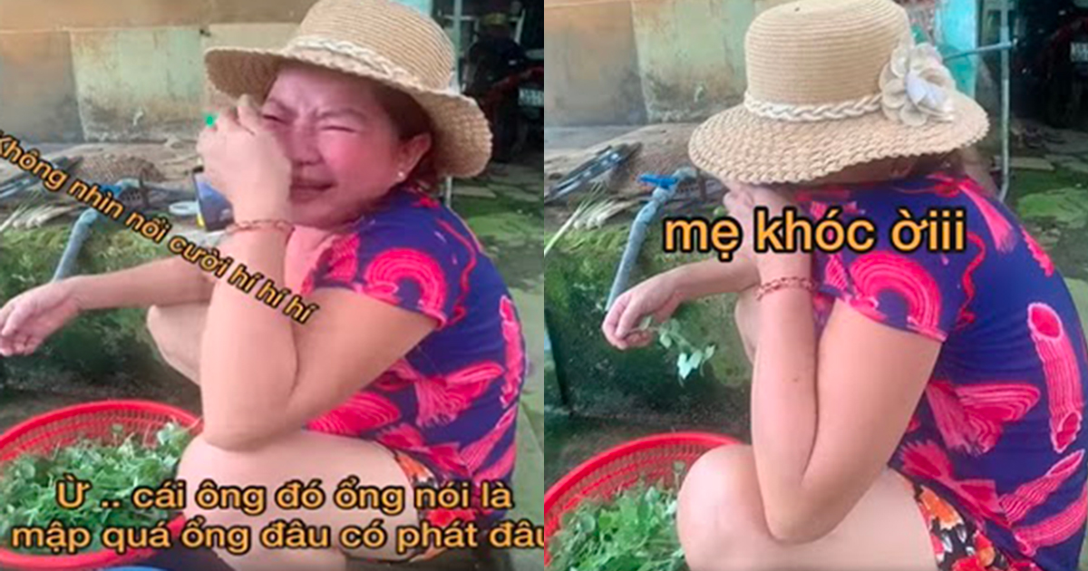Có đoạn clip ngắn ghi lại cảnh người mẹ vừa ngồi lặt rau vừa khóc, nước mắt ngắn dài khi nghĩ tới đứa con xa quê đang mắc kẹt lại thành phố. Trong điện thoại đang facetime với con gái, người mẹ không kìm được xúc động, cô con gái còn lại thì đứng quay clip và trêu chọc mẹ.