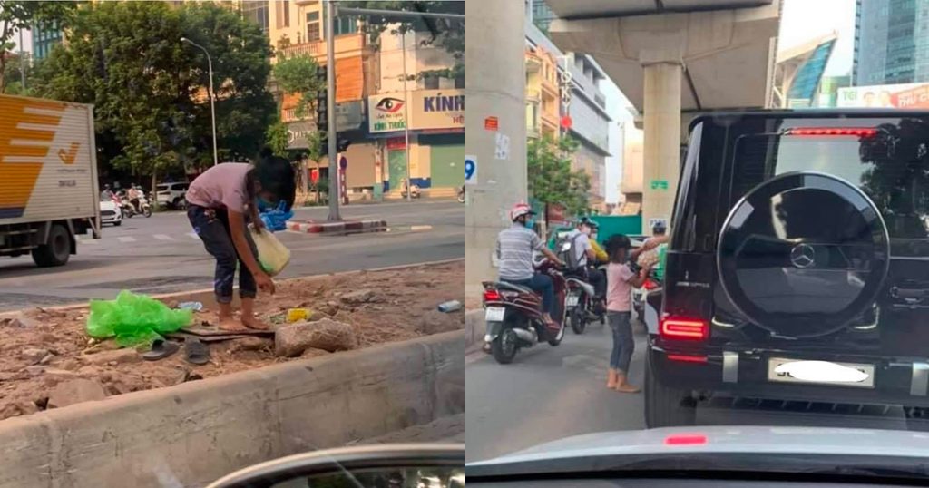 Cụ thể, khi chiếc xe G63 đang lưu thông trên đường thì bất ngờ dừng đèn đỏ. Cũng trên con đường ấy, có em bé gái đứng bán trứng với khuôn mặt ngơ ngác, dòng người xung quanh em vẫn đang đông đúc vào giờ tan tầm.