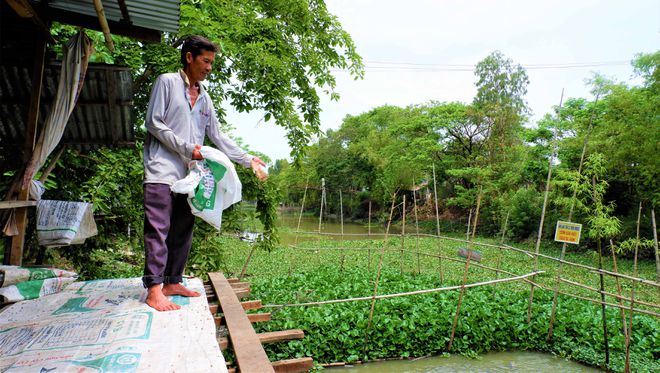 Ông Phan Văn Minh là hàng xóm cho biết, người dân địa phương rất yêu quý đàn cá này, hay mua thức ăn hoặc cắt rau muống cho cá ăn