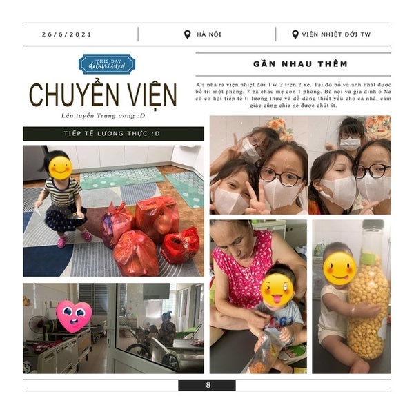 Cũng trong ngày 26/6, dù bệnh tình của cả nhà chưa có dấu hiệu chuyển nặng, nhưng do lo ngại con út có tiền sử bệnh tim, anh quyết định cùng cả nhà ra Bệnh viện Bệnh Nhiệt đới Trung ương (TP. Hà Nội) để “chiến đấu” với Covid-19. Cả gia đình chuyên tâm điều trị và nghe theo hướng dẫn từ bác sĩ. Ngày 15/7, “nhóm thứ 1” gồm bà ngoại, chị N. và 2 con âm tính với SARS-CoV-2 nên được xuất viện trước. Đến ngày 20/7, 2 người con khác và bà giúp việc tiếp tục được về nhà. Hành trình điều trị của cả gia đình kết thúc khi vào 2 ngày sau, 2 bố con anh may mắn khỏi bệnh.