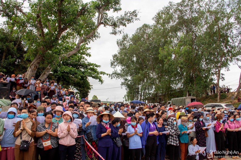 Tham dự buổi lễ phó.ng si.n.h có các chư tăng, cán bộ Lữ đoàn Công binh 414 (Quân khu 4), lãnh đạo huyện Nam Đàn, xã Nam Thanh và hơn 2.000 phật tử đến từ khắp nơi trong và ngoài tỉnh. Ảnh: Huy Thư