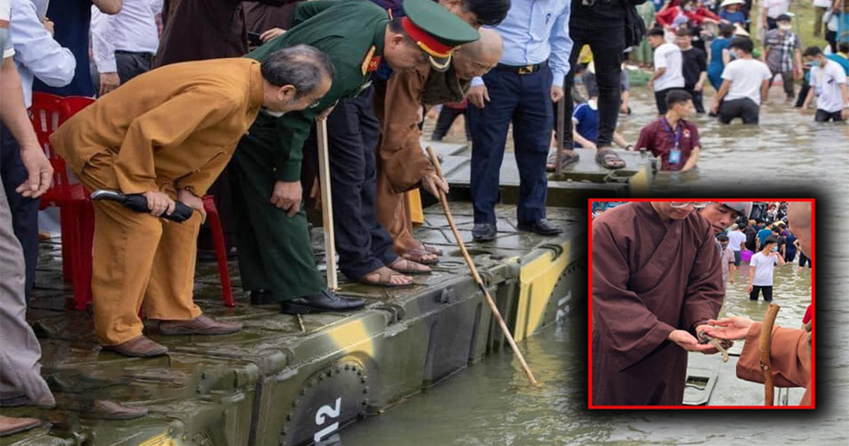 Có một hiện tượng rất lạ đã xảy ra khi mọi người đang làm lễ phó.ng s.inh. Đó là bỗng bên kia sông rất nhiều r.ắn nước, nhiều vô kể, ngóc đầu bơi nhanh băng qua sông đến bò trườn đùa giỡn nơi chiếc phà có Thượng tọa Thích Chân Quang, có quý thầy tụng kinh, có các quan khách chính quyền đến dự, có các chỉ huy lữ đoàn công binh đến hỗ trợ.